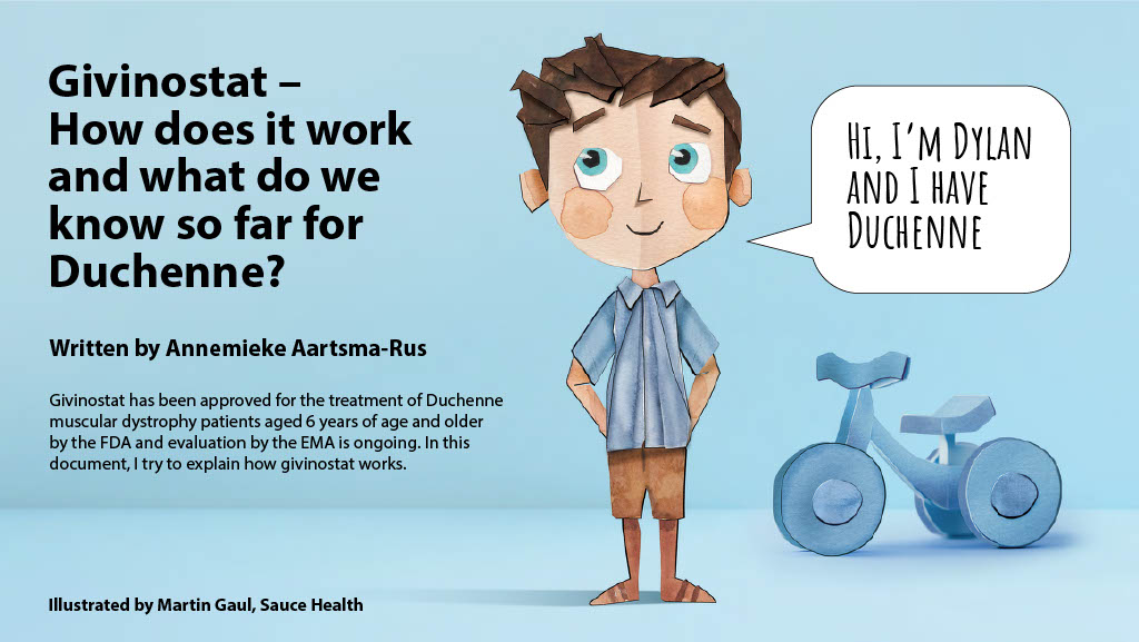 Annemieke Aartsma-Rus made an illustrated story to explain more about Givinostat and Duchenne. Click on the cartoon below to see her full explanation on Givinostat on our website.